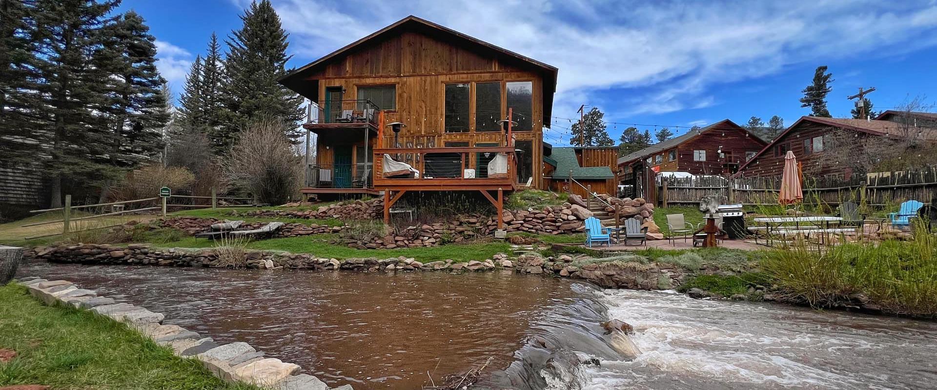 Cucharas River Bed & Breakfast – a rustic & inviting five-room cabin nestled in the most picturesque valley of Colorado's Spanish Peaks. Our unique location on the bank of the Cucharas River along the Highway of Legends makes this the perfect spot for your Colorado experience. Explore the charm of Cuchara Village or nearby LaVeta, hike the Spanish Peaks, or simply relax in this unique riverside lodge surrounded by towering pines.